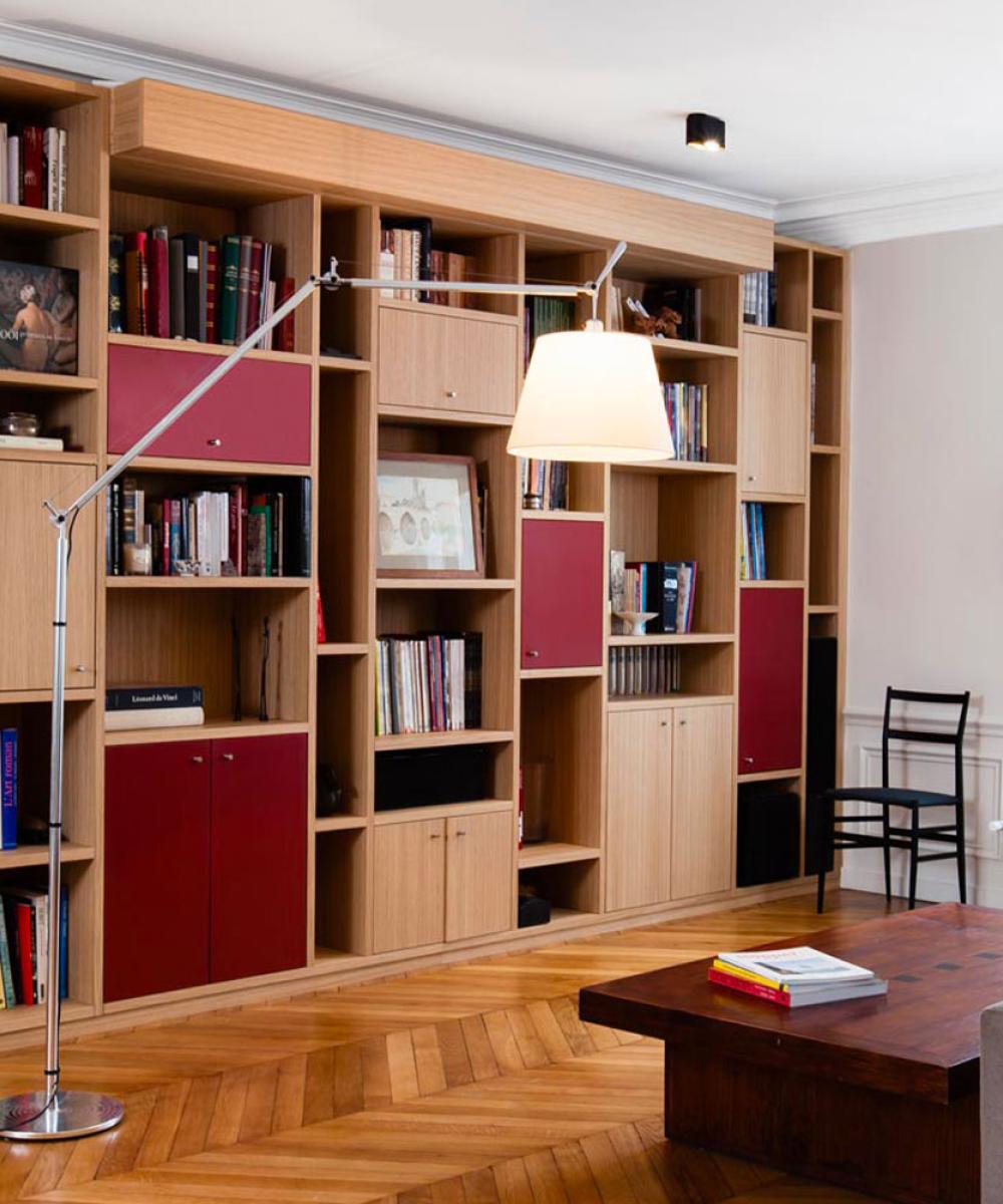 Nous concevons des espaces de rangement sur mesure qui tiennent compte des plans de votre appartement et de vos besoins pour vous faciliter la vie au quotidien : dressing, placards, bibliothèques, têtes de lit, combles … La praticité et le gain de place sont la priorité mais la décoration et l’esthétisme ne sont pas sacrifiés, c’est pourquoi nous proposons un large choix de finitions de façades : à peindre (peintures à pigment naturel type Farrow and Ball), laquées, stratifiées, plaquées…